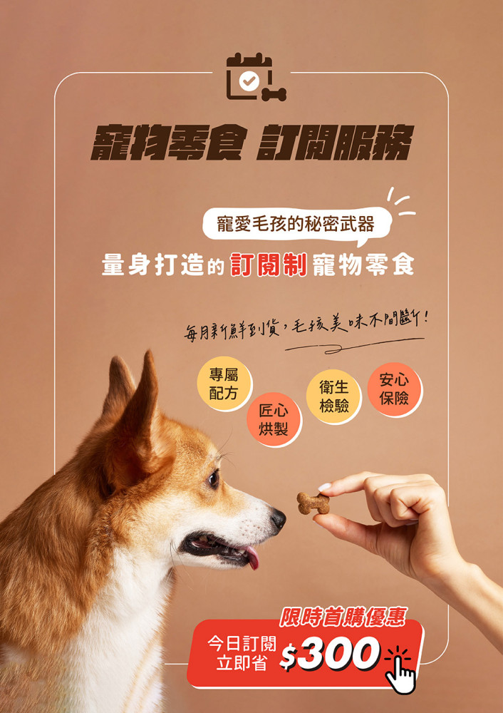 這不是固定口味硬塞給你的寵物零食包,而是能依毛孩年齡、體型與飲食需求去調整內容的訂閱制方案。不用反覆選、不怕買錯,每一期寄到的,都是當下最適合牠的獎勵。